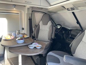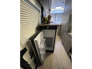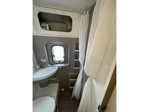 De camper is voorzien van airconditioning, climate control, verwarming, horren en verduistering, een ruime koelkast en een complete badkamer met douche en toilet.