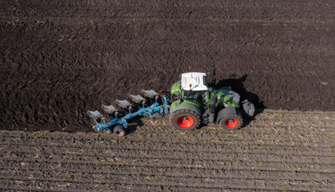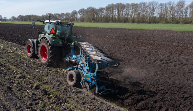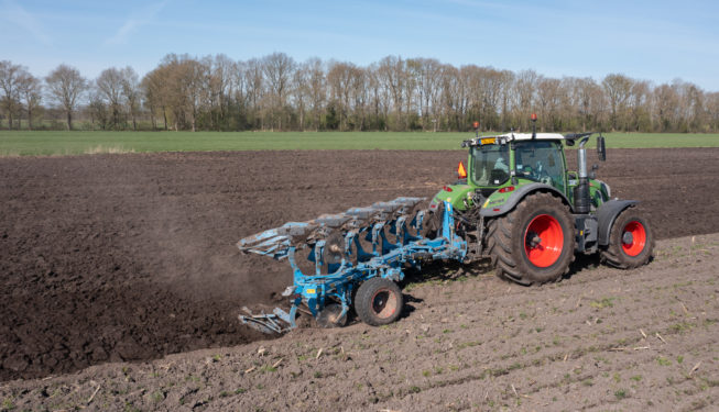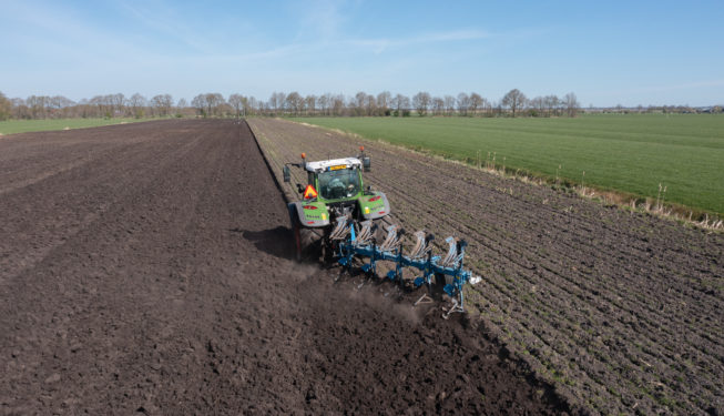 Ploegen met de Fendt 718 Vario met daarachter een 5-scharige Lemken Vari-Opal 8 ploeg.