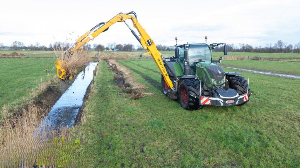 Nog op de valreep van dit jaar afgeleverd onze nieuwe maaikorf van BOS HE 8074 Gce BF maaiarm met een 4,3 meter brede maaikorf. Deze is gemonteerd aan de Fendt 724 Profi Plus trekker met luchtdrukwisselsysteem.